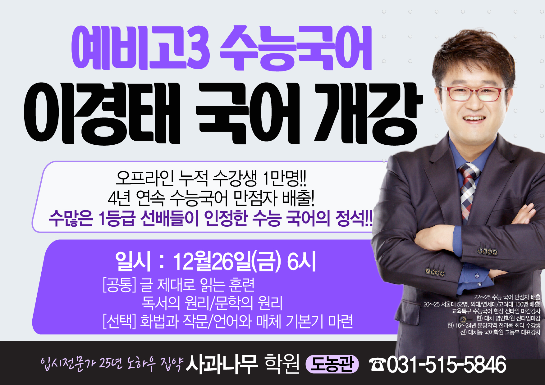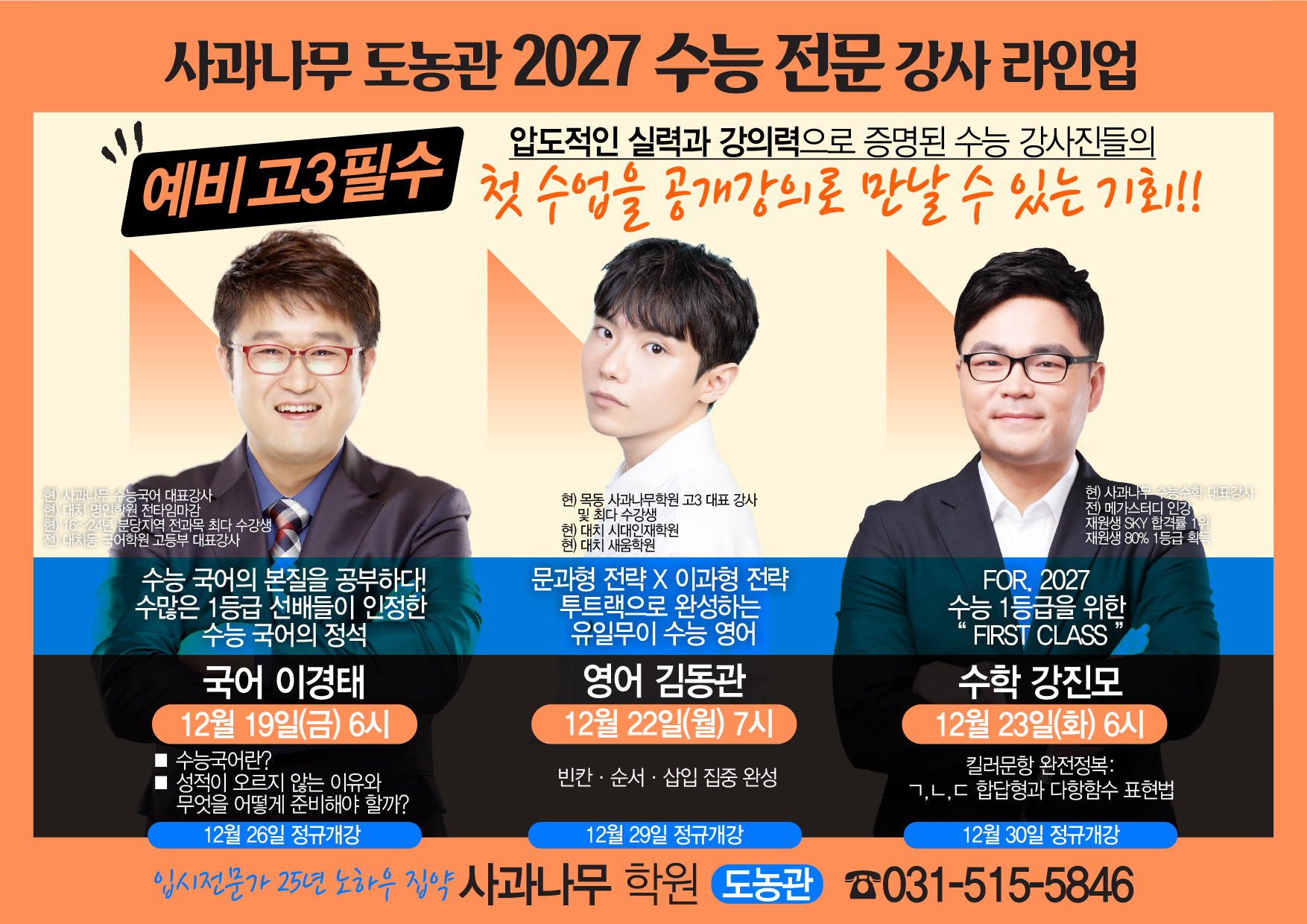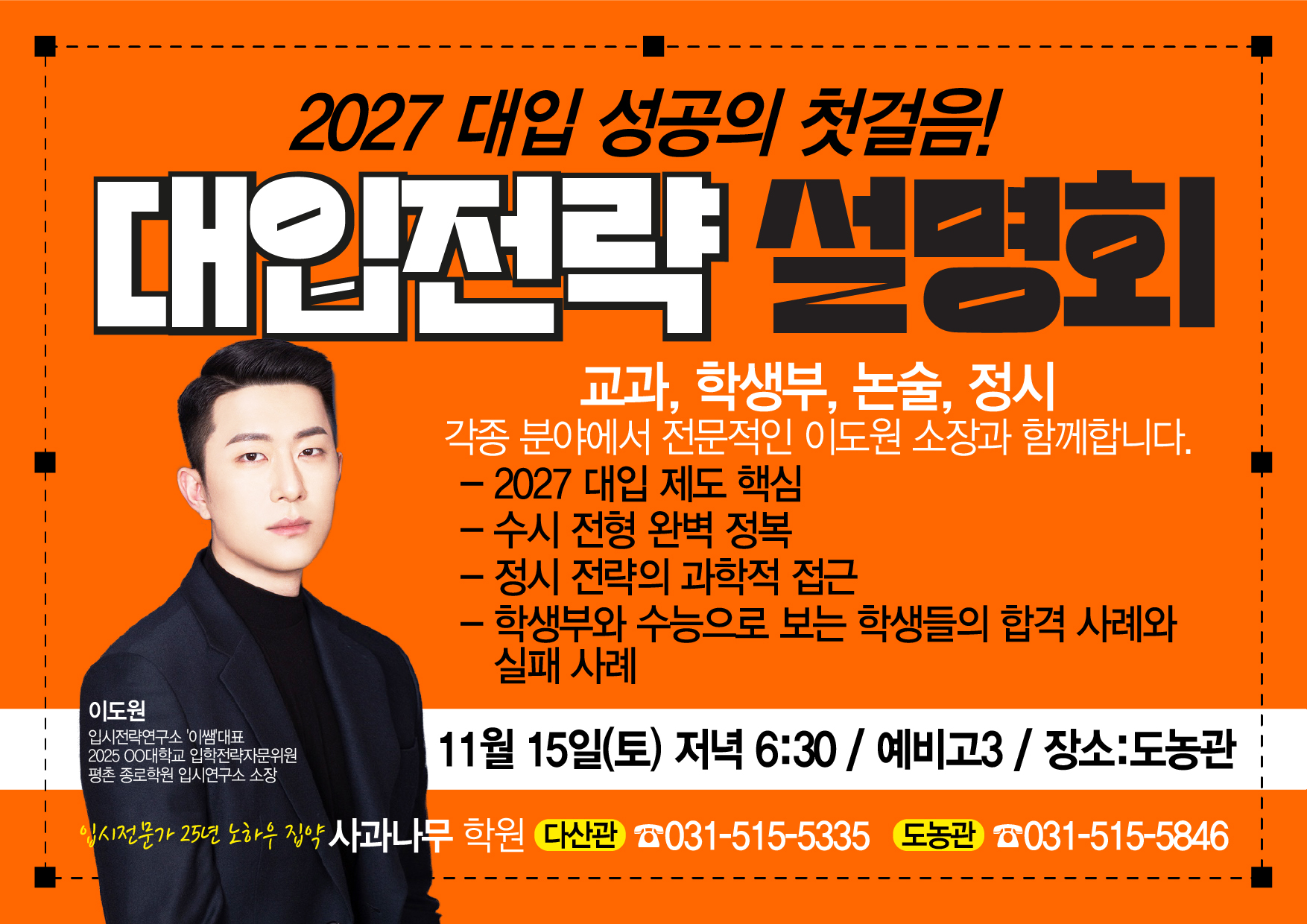 도농관 3차 확장 교육비 할인 이벤트 ! 25년입시전통 사과나무...