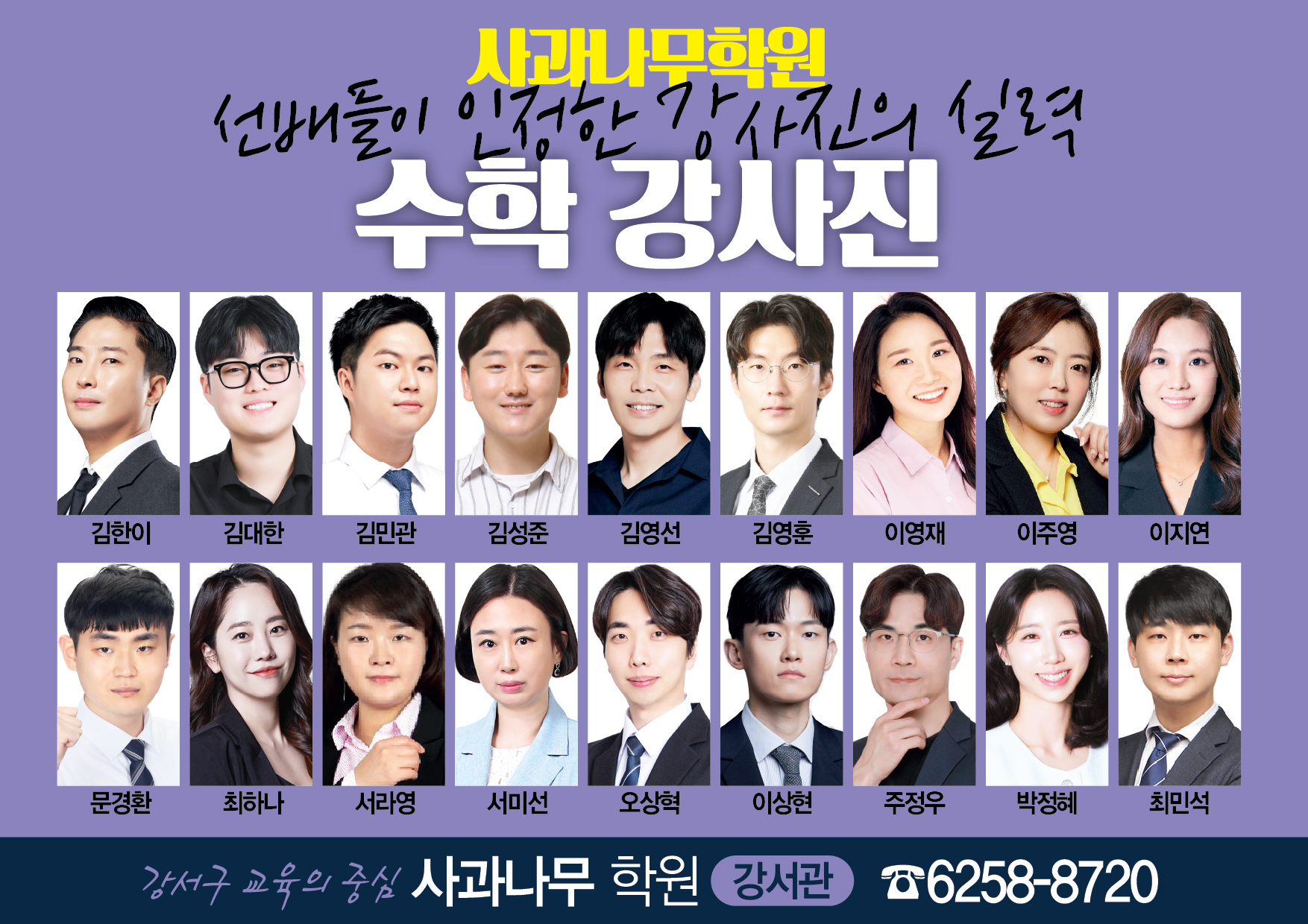 사과나무학원 강서관 | 본관 : 서울특별시 강서구 강서로 308 신양빌딩 | 02-6258-8720
