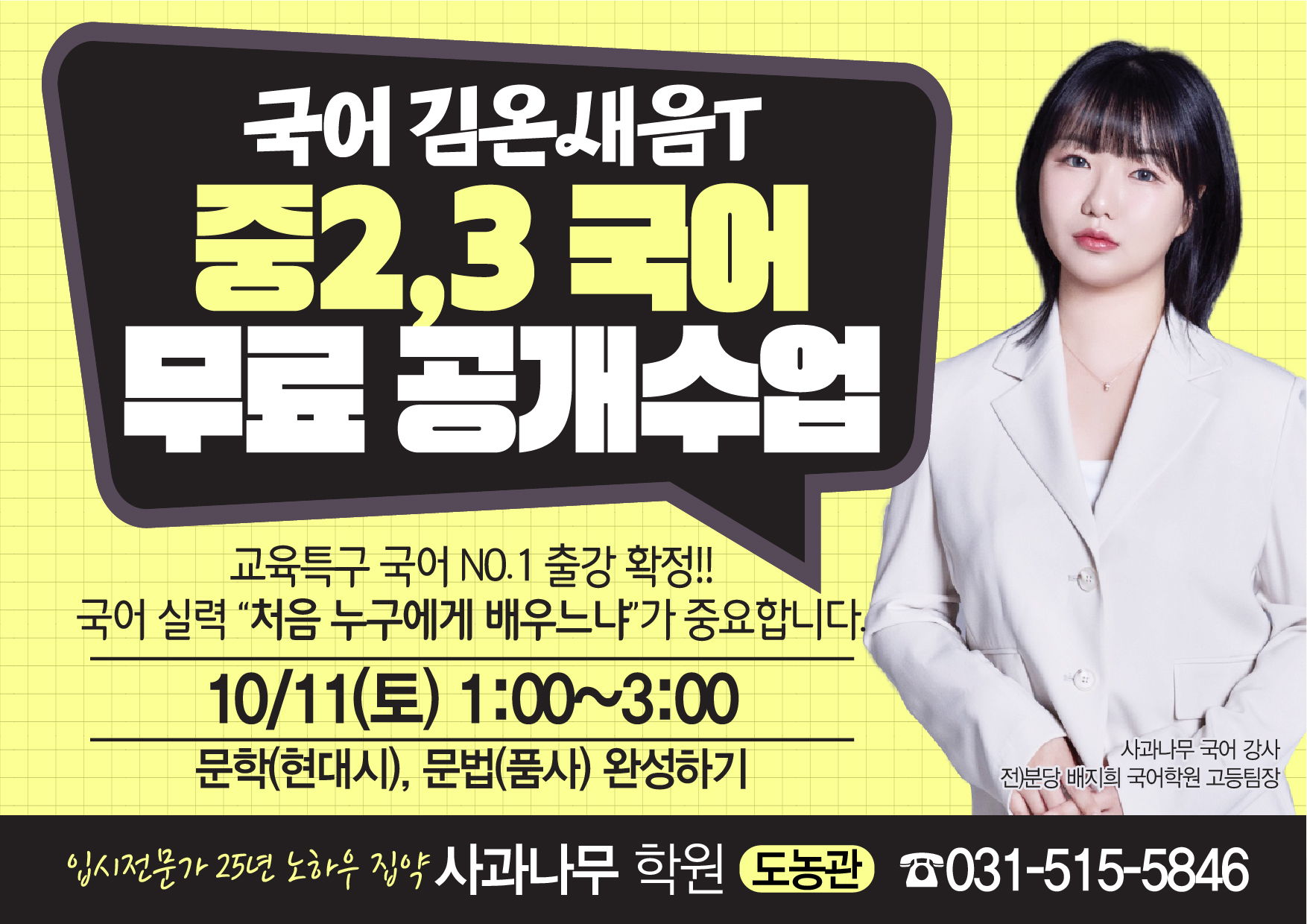 [국어] 중3,고1 김정민국어 추석 무료특강