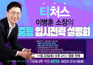 대한민국 최고의 교육입시전문가들을 초빙한 입시설명회를 정기적으로 진행하고 있습니다.