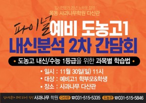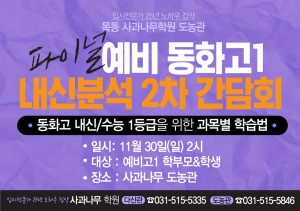 일시·장소 : 11. 24(월) 09:00 / 사과나무학원 [도농관]