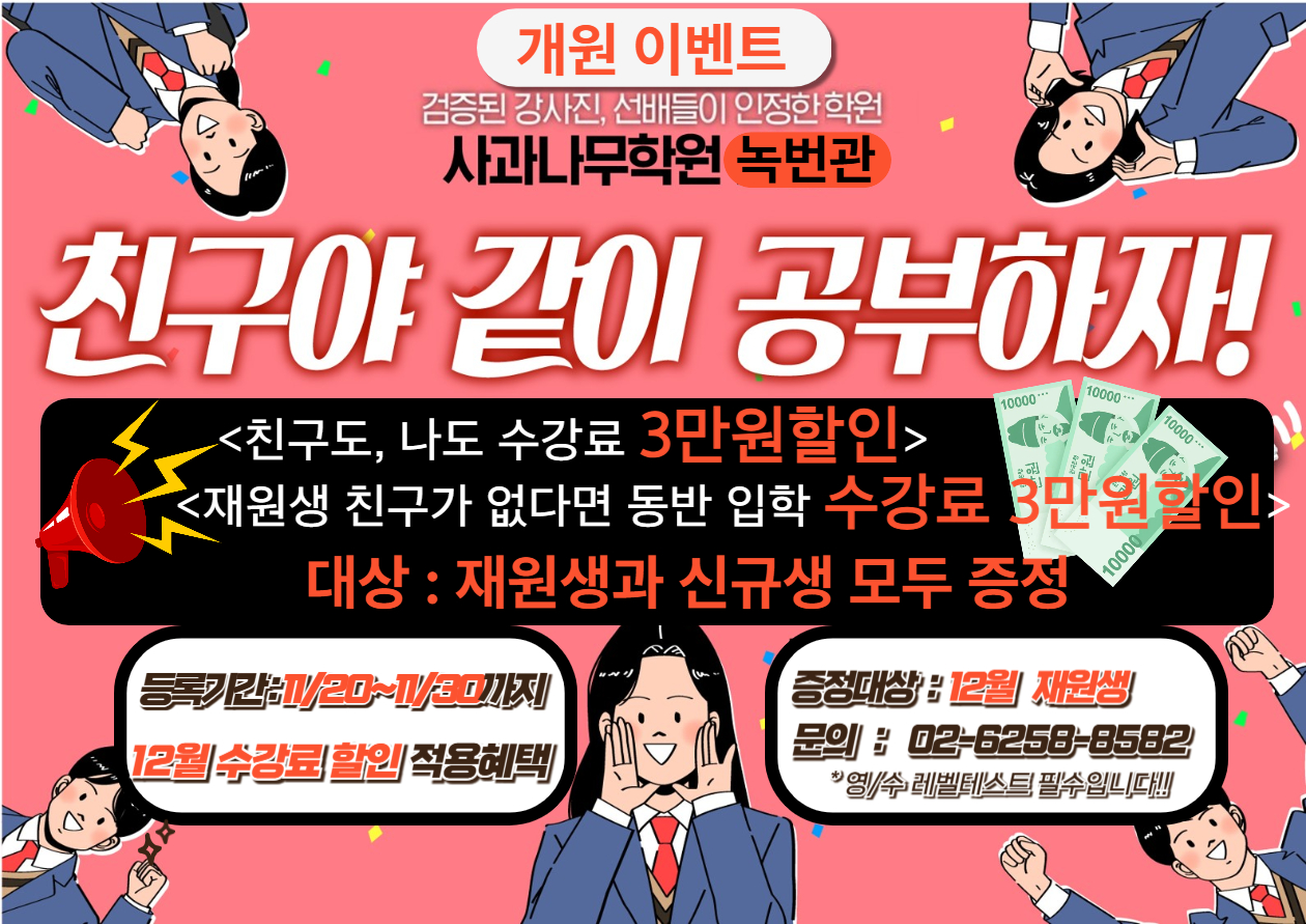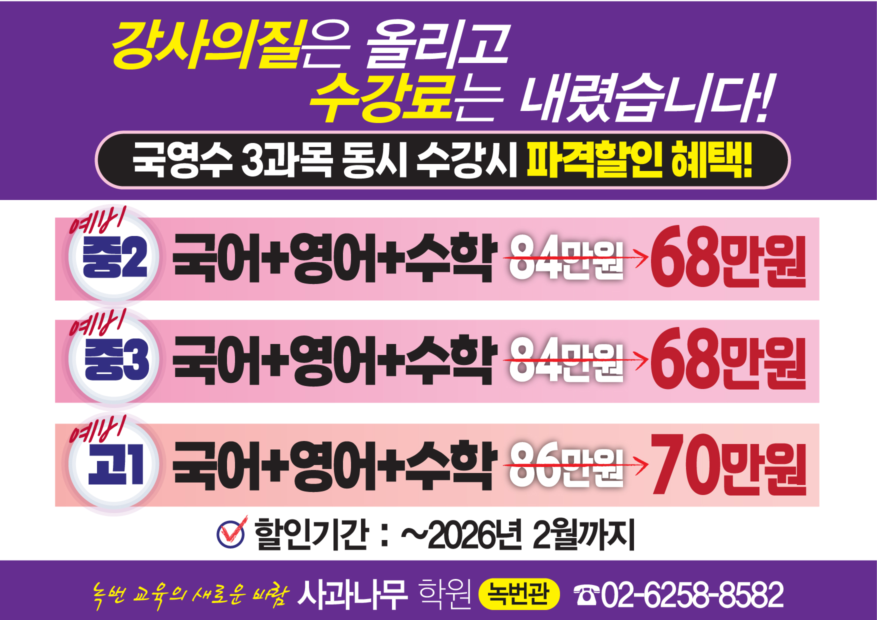 사과나무학원 녹번관 홈페이지 오픈 알림